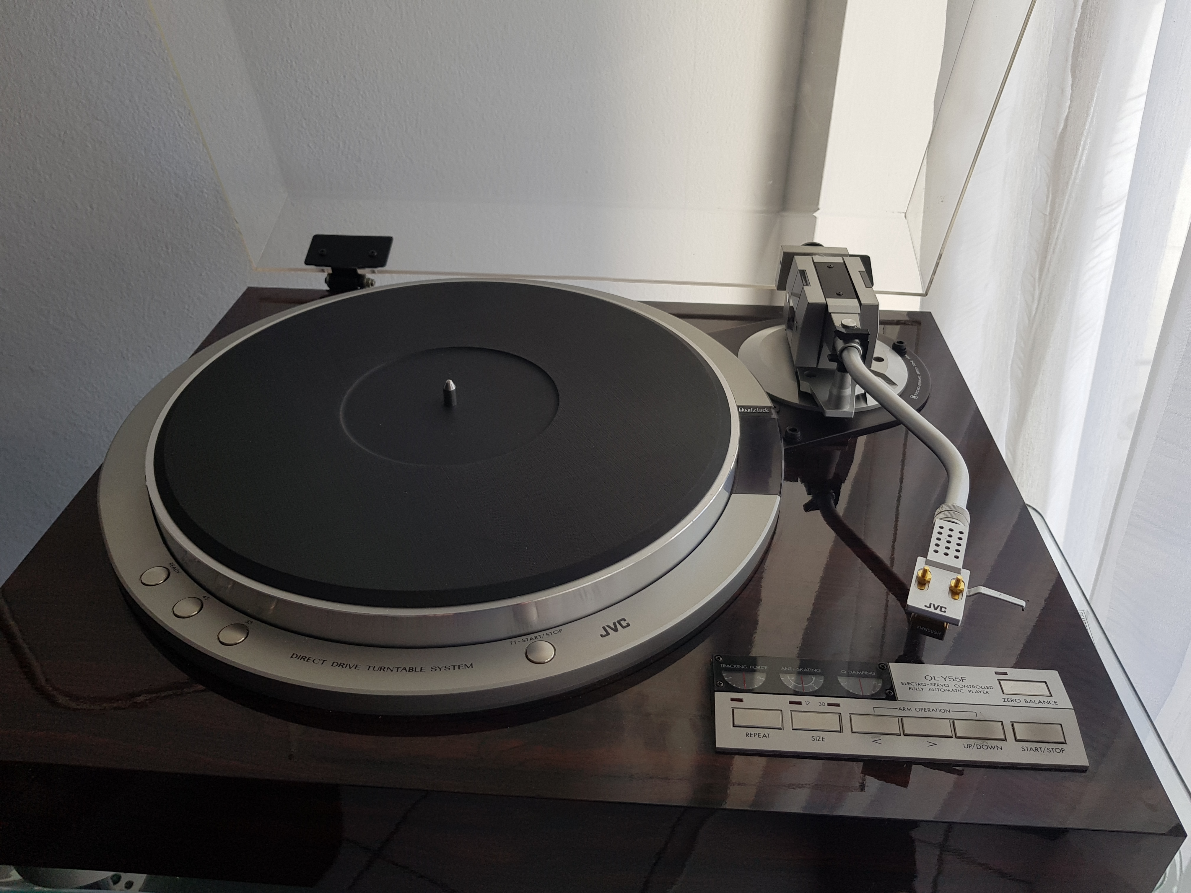 Aufgefrischt: Das Tonarm-Konzept des JVC QL-Y55F ist heute noch so innovativ wie in den 80ern, aber auch sehr aufwändig. Der völlig ruckfreie Direkttriebler bietet eine für diese Bauart überragende Laufruhe. Mit dem neuen System spielt er jetzt deutlich oberhalb meiner Lautsprecher-Liga.